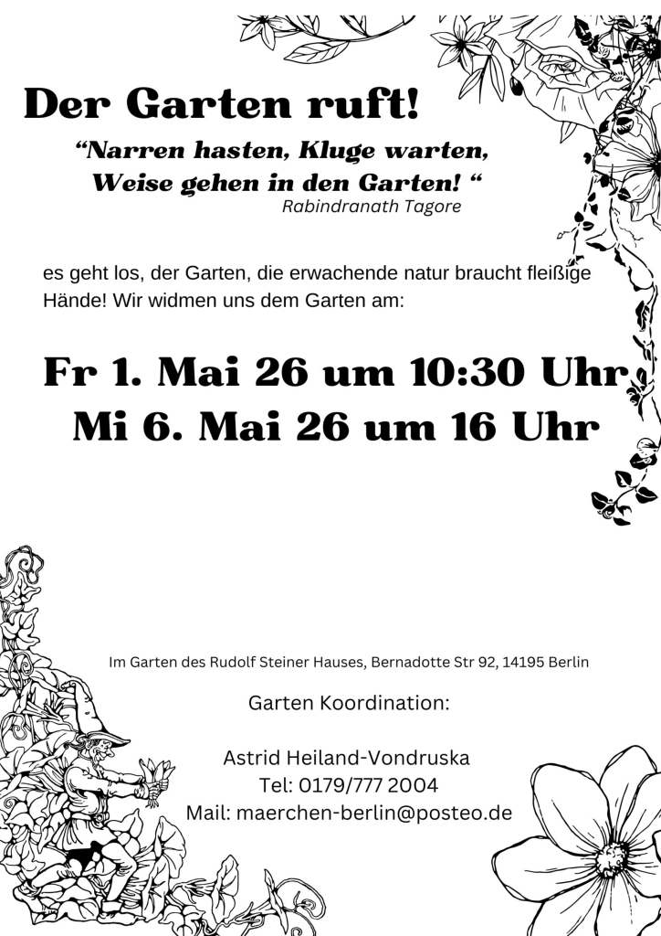 Wenn nicht anders angegeben, finden alle Veranstaltungen im Rudolf Steiner Haus, Bernadottestraße 90/92, 14195 Berlin, statt.